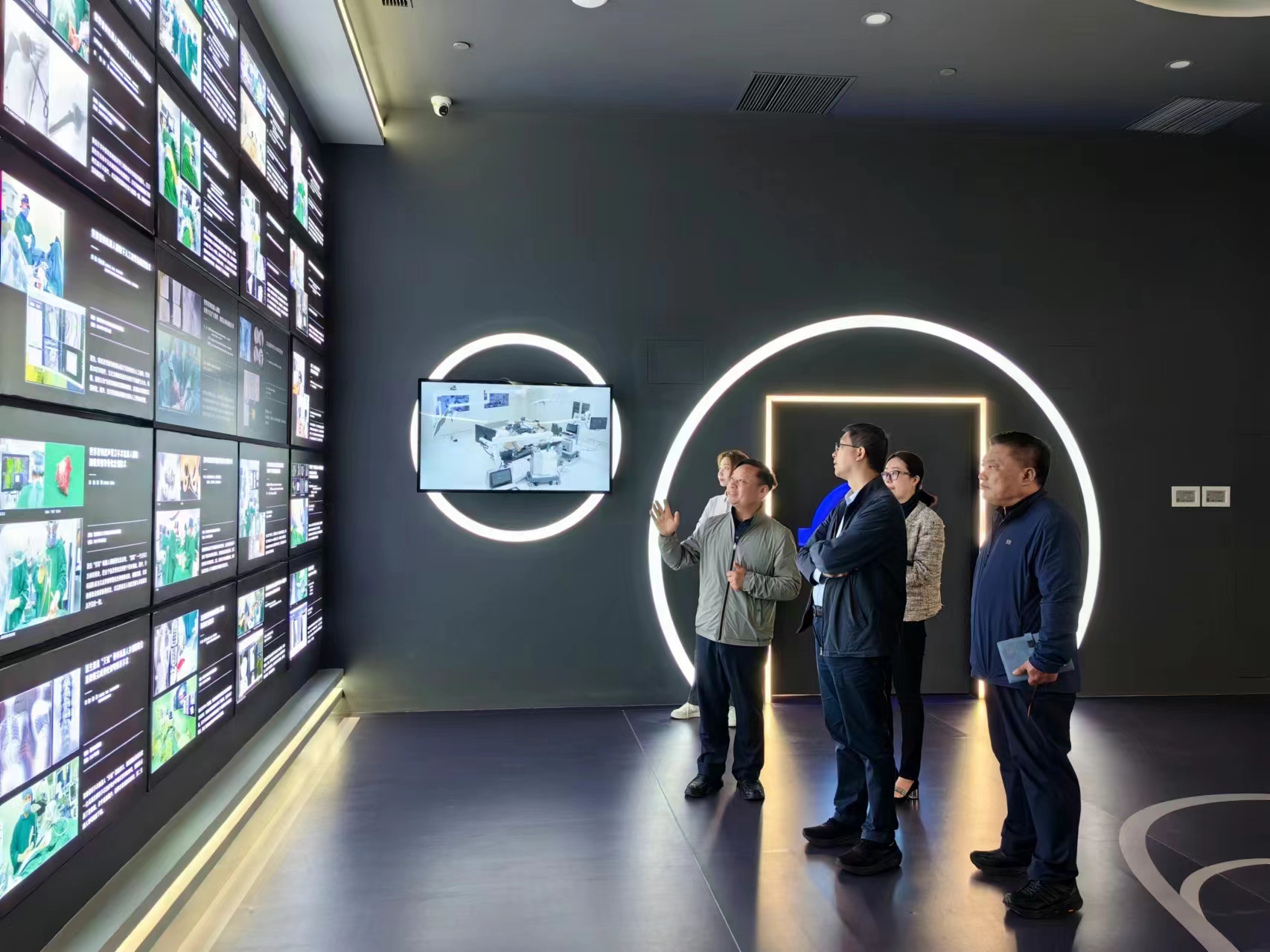 4月 30 日,北京市海淀區西三旗街道黨工委書記劉建民帶隊參觀考察天智航,董事長張送根等進行了演示匯報。 -