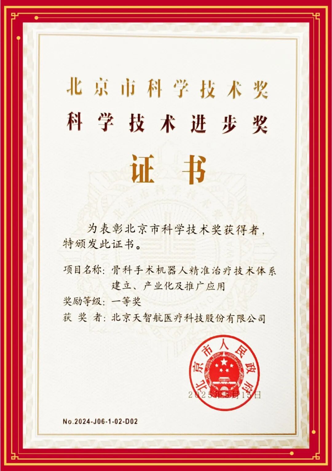 2026-04-15喜報 | 天智航榮獲2024年度北京市科學技術獎科技進步一等獎!